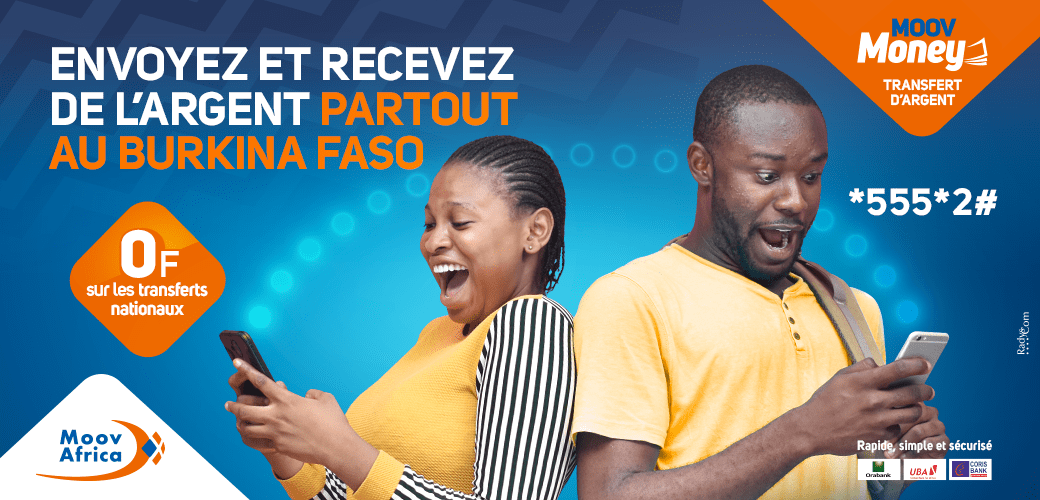 Avec Moov Money, vous pouvez envoyer et recevoir de l’argent partout au Burkina, en toute sécurité, depuis votre téléphone.