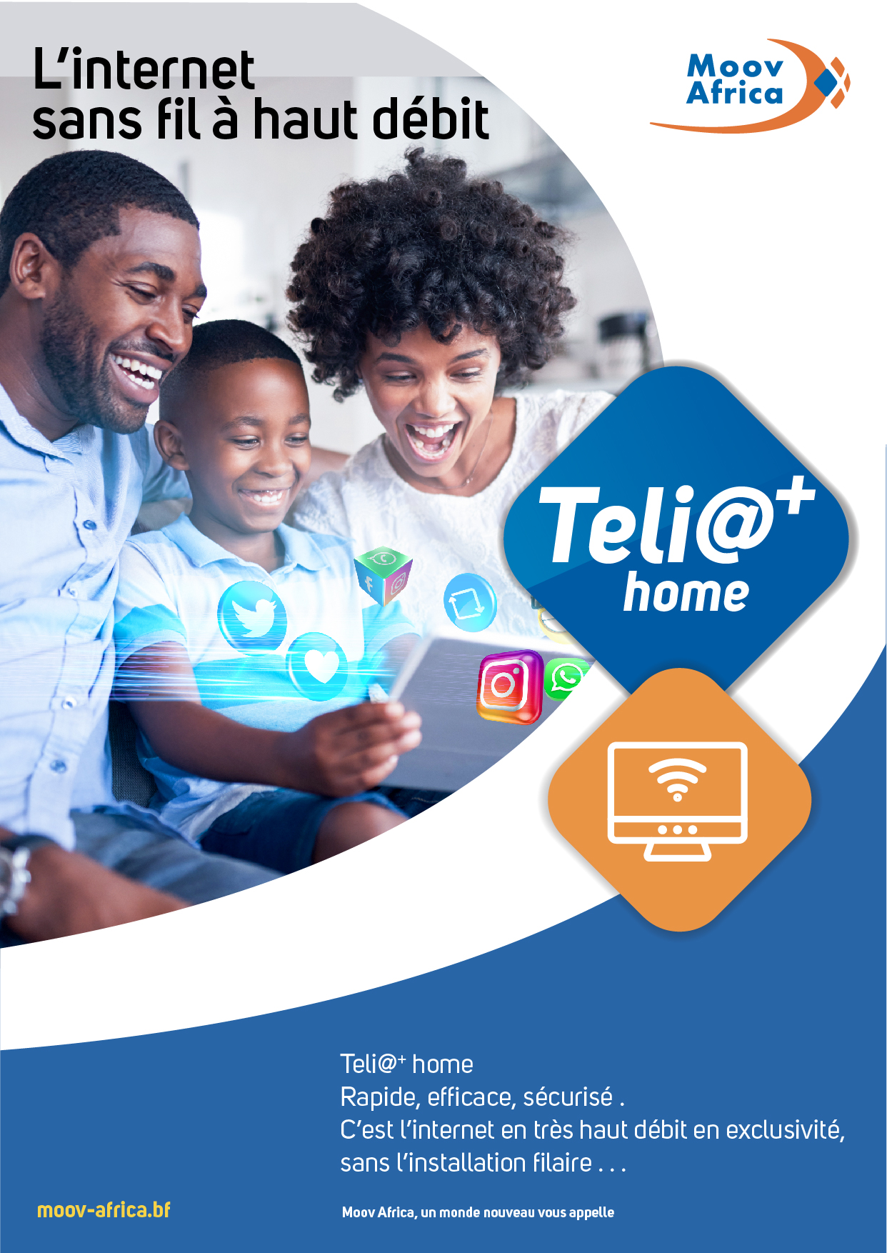 - Avec TELI@+ HOME, profitez en famille d’un accès Internet haut débit illimité, de 4 à 32Mb/s fiable et rapide.
